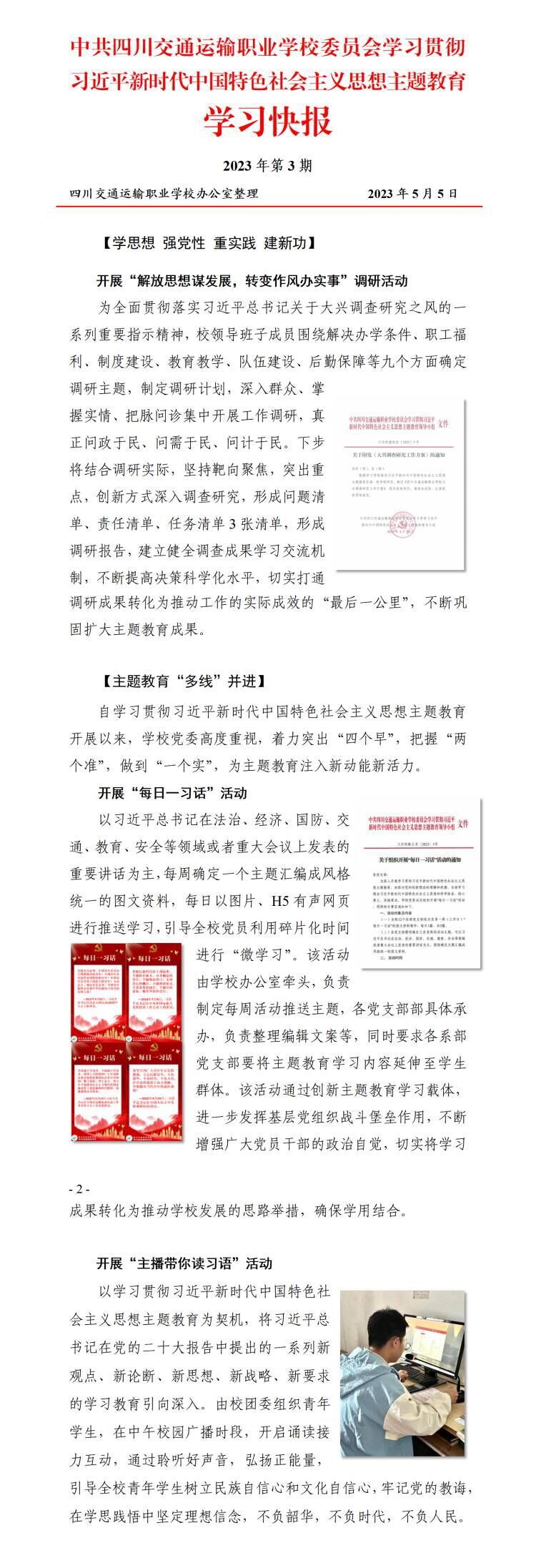 学习贯彻习近平新时代中国特色社会主义思想主题教育学习快报第3期-四川交通运输职业学校-官方网站